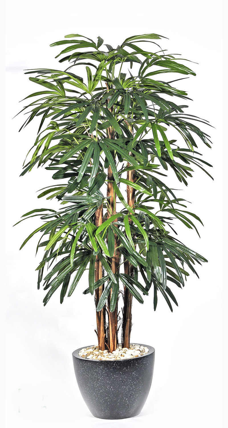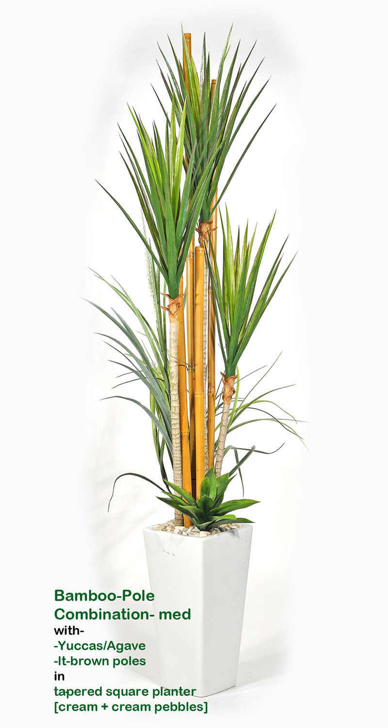 a selection of unique mix of artificial plants & stained bamboo-poles, set into light-weight planters with bonded pebbles...