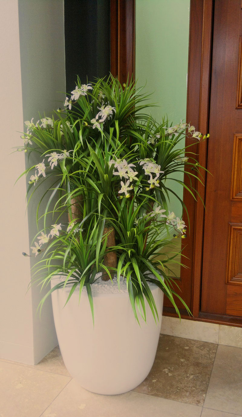 Add a splash of color to your décor with an artificial orchid tree from Interior Gardens. Available in white, orange, purple & lavender flowers.