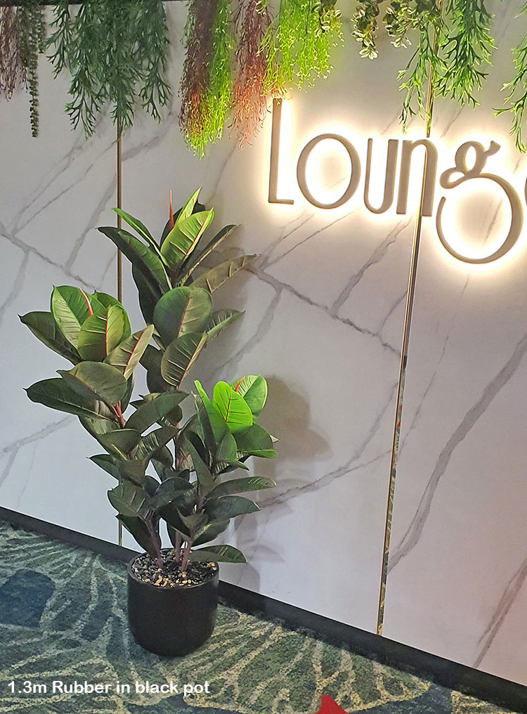 Our rubber-tree is a popular choice with its dark to mid green foliage & realistic real-touch materials. It comes in a plastic pot w/ planter options available.