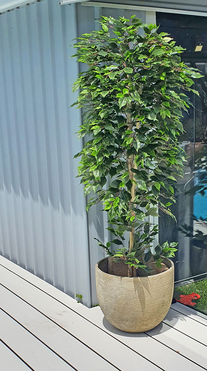 A lush & ornamental indoor tree perfect for the inside, with natural-wood stem. These stay green all year round and are UV treated making them safe outside too!