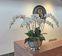 Custom-made orchids in basket for restaurant reception.