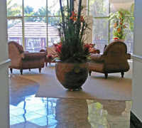 A row of low potted palms in foyer enhances 'entrance' feeling to this foyer.