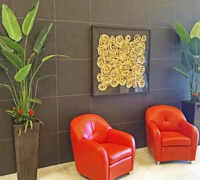 Two large planters with multi-stem Dracaenas look impressive in this office foyer entrance.