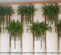 Here large bare columns have been softened by a simple line of greenery. This was a very cost-effective way to add greenery to bare overhead spaces.