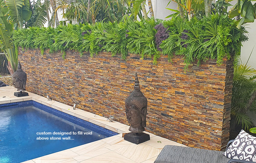 This 6m long wall is sun-tolerant & custom made to sit in wall space.