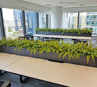 Mobile bamboo troughss to separate Client & Staff areras in open office layout.