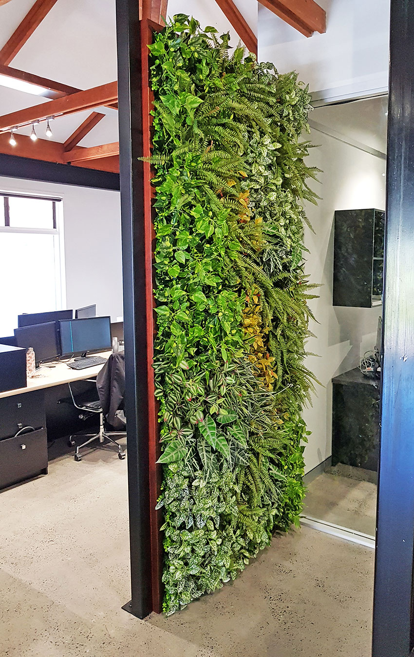 Green-Wall freshens up bare untidy wall in 'industrial-decor' office making for a more pleasant work envoironment.