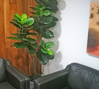 Fiddle-Leaf Ficus in trough planters, smart, tidy & very natural in an office setting.