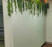 Existing wire dividing screen in office was transformed instantly by climbing artificial vines.