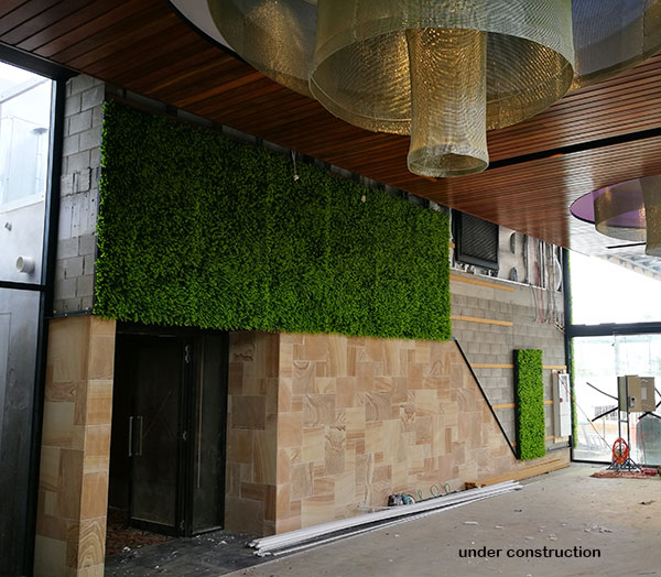 Artificial Green Wall flows seamlessly from outdoors into club foyer