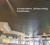 -adding greenery inside was a challenge, with open partitions & glass-walls as well as not wanting to lose floor space? There was however a large irregular shaped ceiling & rather than just add more hanging-baskets, we used trailing vines, climbing & twisting 'randomly' to break-up bare spaces.