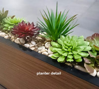 -due to narrowness of long 'strip' planters, we suggested assorted Succulents to match scale. On bigger triangle planters we suggested lush large-foliage_x005F Calatheas & Heliconias.
