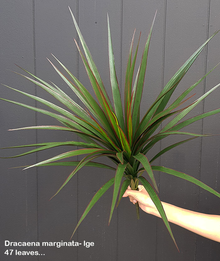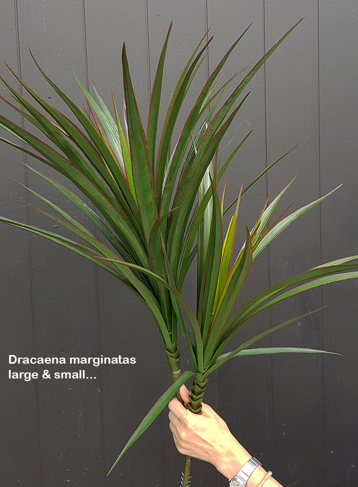 This realistic-looking artificial yucca plant has glossy dark-green foliage with a burgundy stripe. UV-treated and suitable for sunny locations.