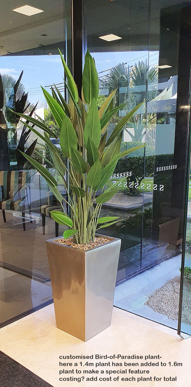 Artificial Bird of Paradise Plants by Interior Gardens with contemporary looks. Available in 1.4m size with 20 fronds & 1.6m size with 25 fronds.