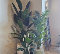 Fresh & clean, mixed greenery in contrasting white pots always works well in Club foyers & Dining areas