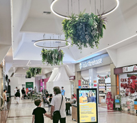 Custom-built hanging planters in shopping mall