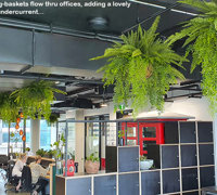 -because ceilings were so stark, all exposed pipes & ducts, we started there, with lush hanging-baskets flowing thru offices, adding a lovely green undercurrent...