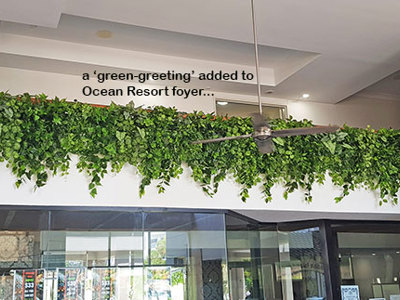Easy-way to add greenery to a bare wall- resort foyer gets a 'green-hello'